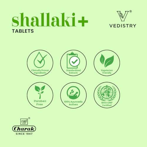 Charak Vedistry Shallaki+ Tablets Joint & Bone Health Supplement | For Joint Pain, Stiffness & Arthritis For Men & Women - 60 Tablets (Pack Of 1)