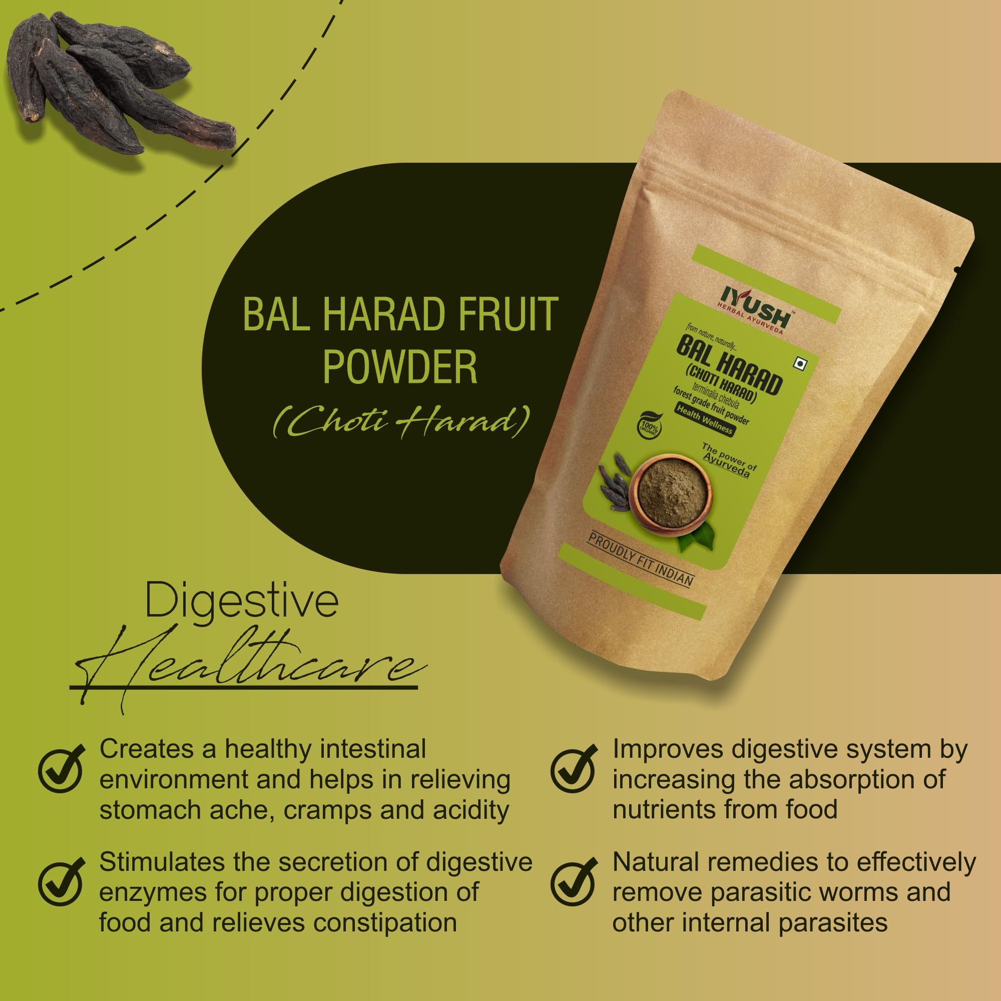 Indulge in the natural goodness of our Bal Harad Powder meticulously crafted for holistic well-being. Derived from the Terminalia chebula tree this finely ground powder is rich in traditional Ayurvedic benefits. Bal Harad is renowned for supporting digestive health detoxification and promoting overall vitality. Elevate your wellness routine with this premium herbal remedy embracing the time-honored wisdom of Ayurveda. Discover the potential of Bal Harad Powder for a balanced and rejuvenated lifestyle.