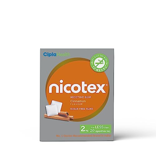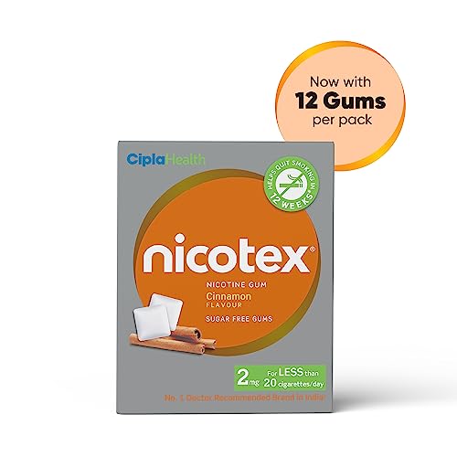 Cipla Nicotex Nicotine Sugar Free Cinnamon Gums 2mg | Helps to Quit Smoking | WHO-approved Therapy | 12 Gums per Pack | Pack of 9