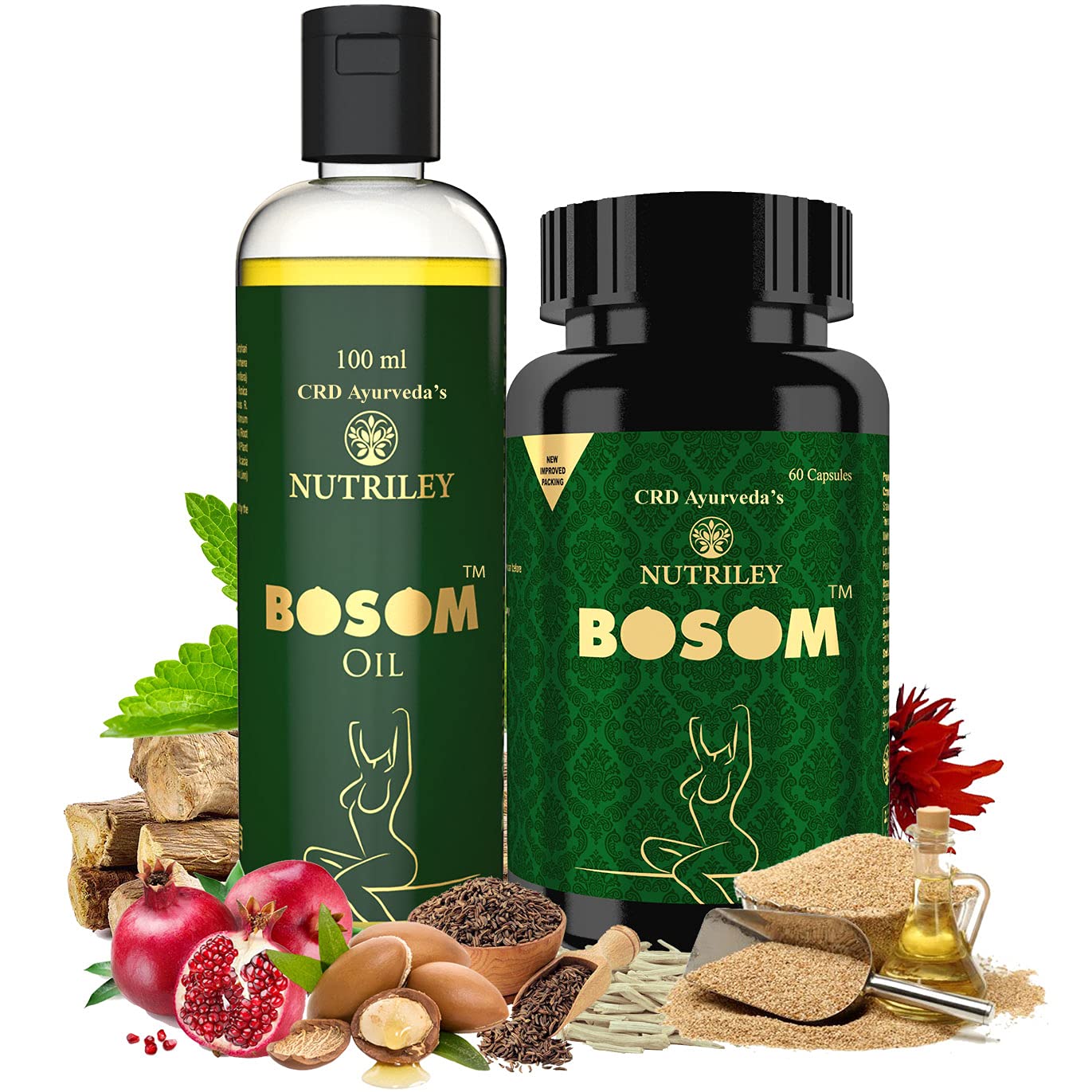 CRD Ayurveda Nutriley Combo Pack of Bosom Capsules & Bosom Oil for Women's Health