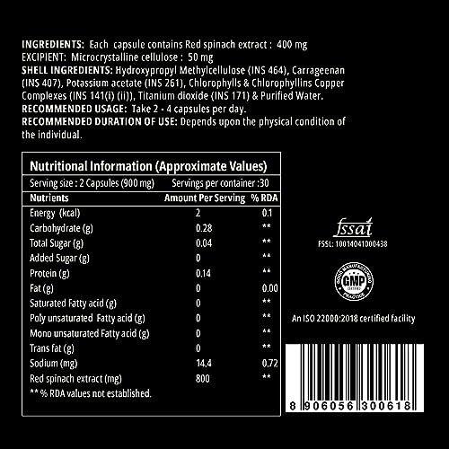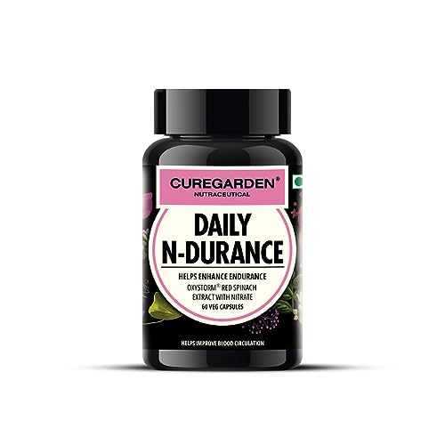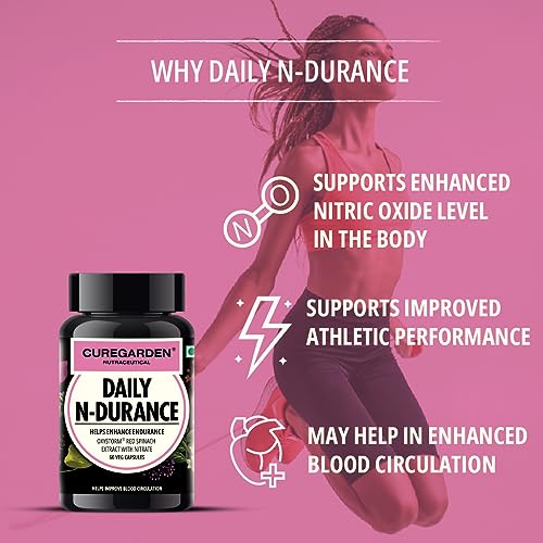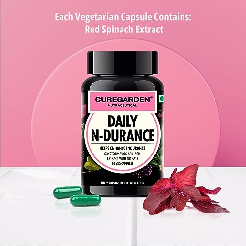 Curegarden Daily N-Durance, Red Spinach Nitrate Extract, Nitric Oxide Supplement, 400 mg, Pre workout Veg Capsules, 60no