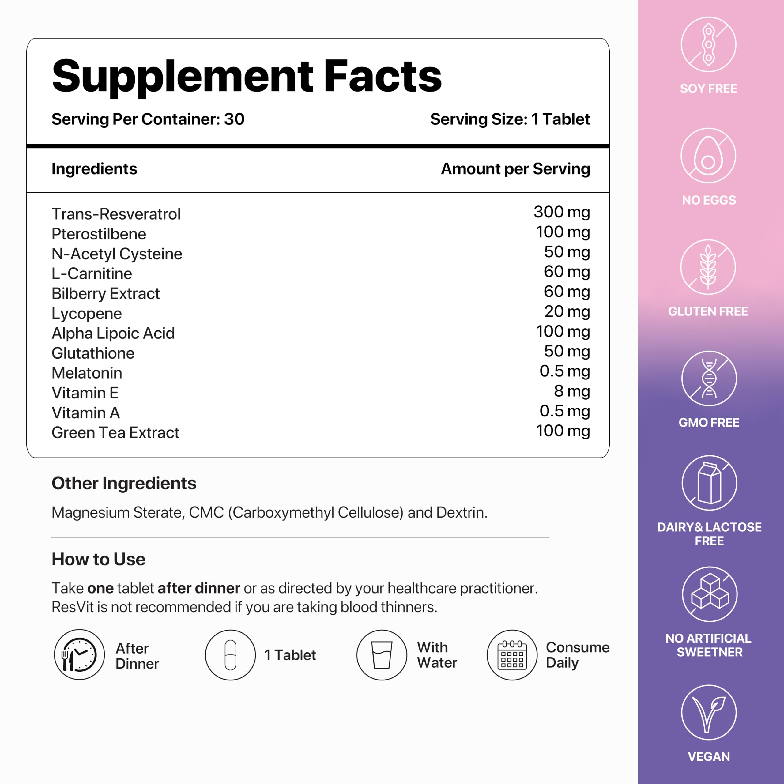 • By taking ResVit you can protect yourself from infections and diseases lower your resting heart rate and maintain healthy blood pressure.