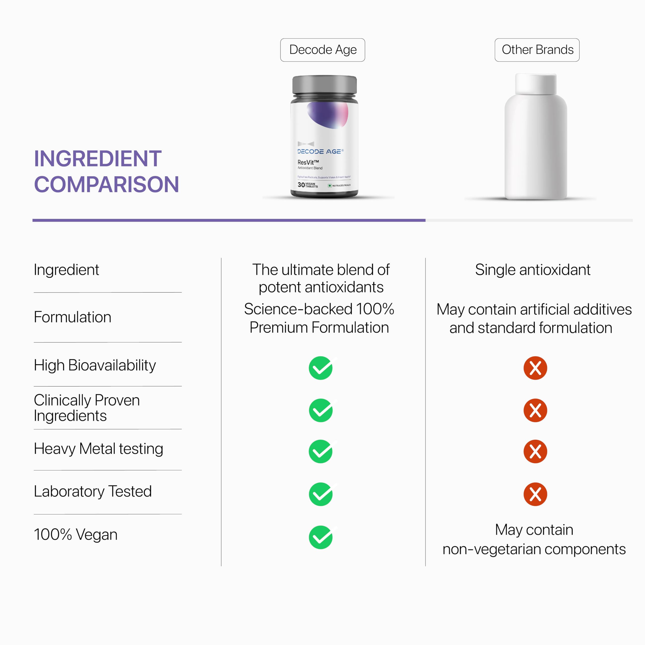 Decode Age ResVit Blend of Trans Resveratrol | Reduces Obesity Blood Pressure Heart Rate & Ageing | Improve Breathing flow & Memory (30 Veg Tablets)