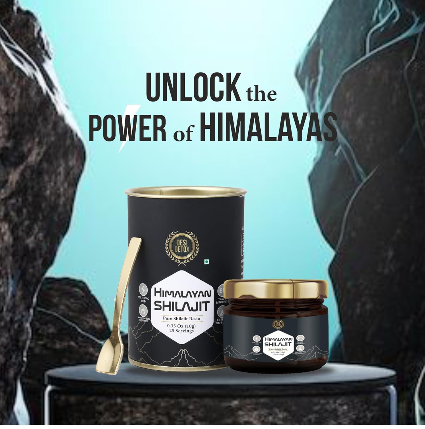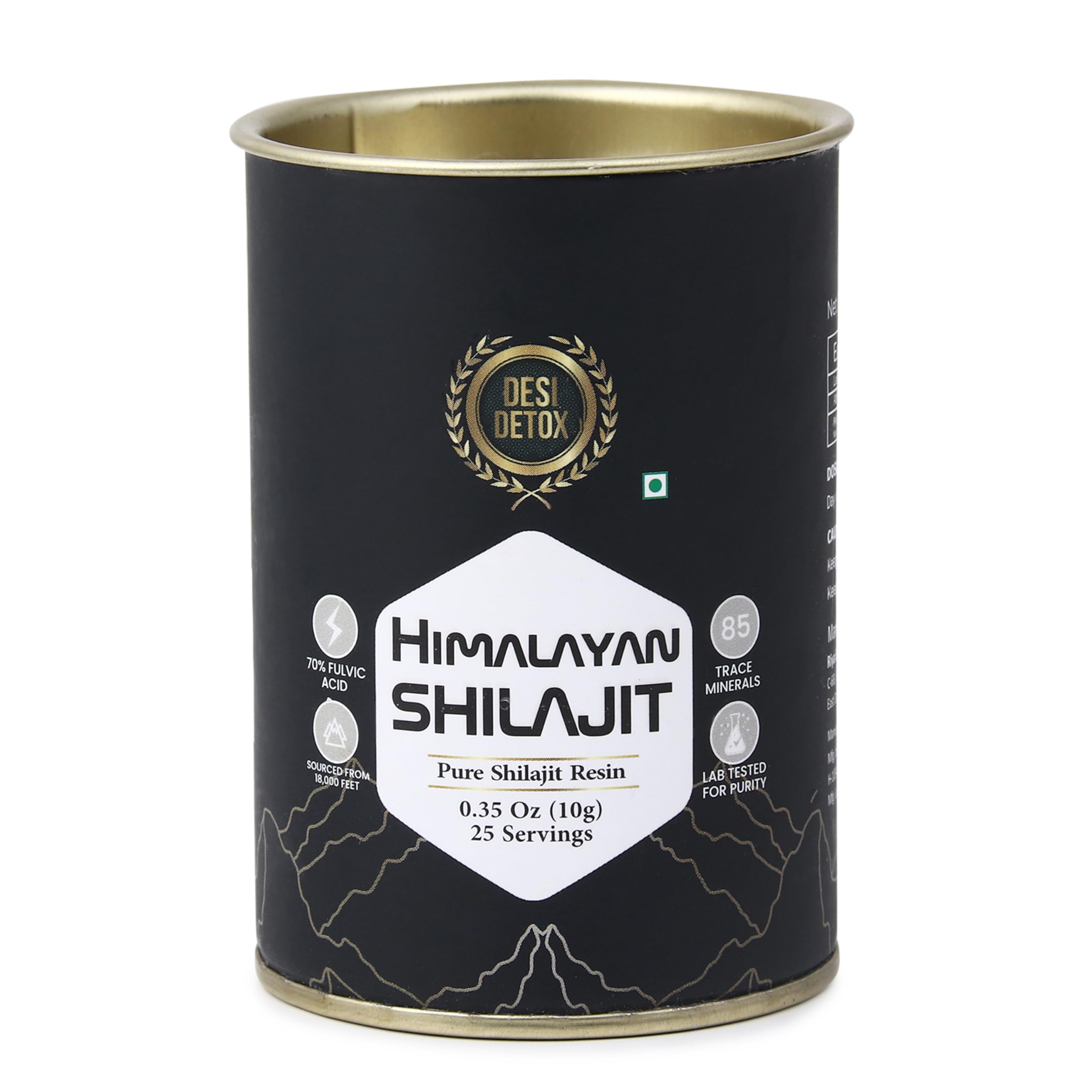 HomeHealth & PersonalDiet & NutritionHealth SupplementsDesiDetox Pure Himalayan Shilajit Resin 10gm High Potency Grade for Men & Women | 25 Servings of 400mg for Health Benefits Energy Boost & Immune Support 85+ Trace Minerals 70% Fulvic Acid with Lab Tested