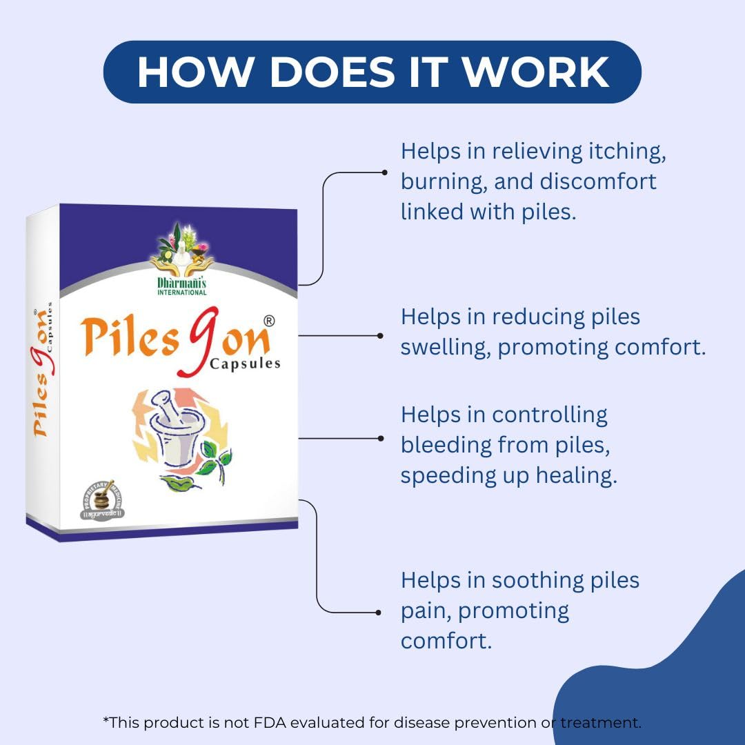 Dharmani's Intternational Piles Gon Capsule | Ayurvedic Relief from Pain Bledding & Constipation (Pack of 5)