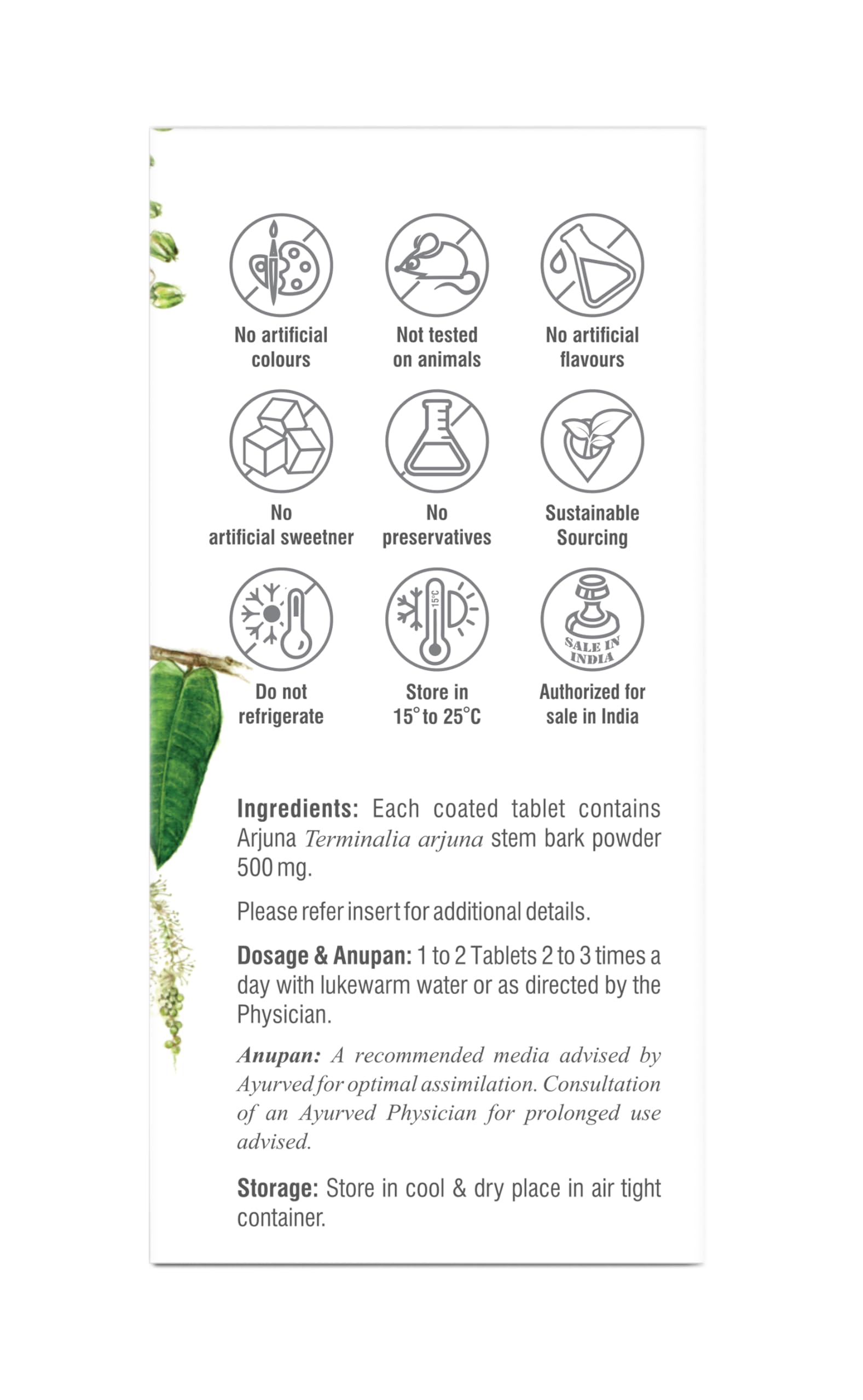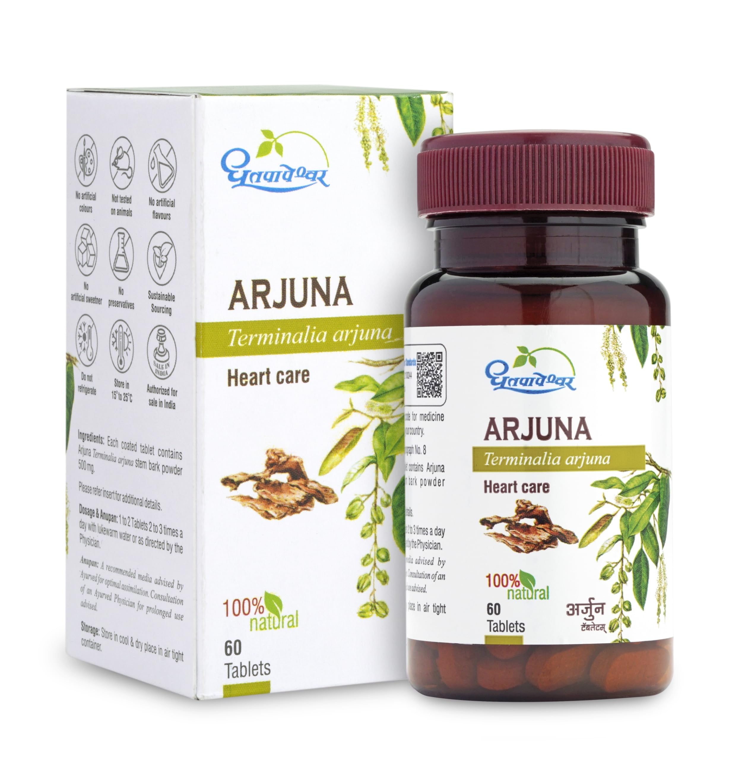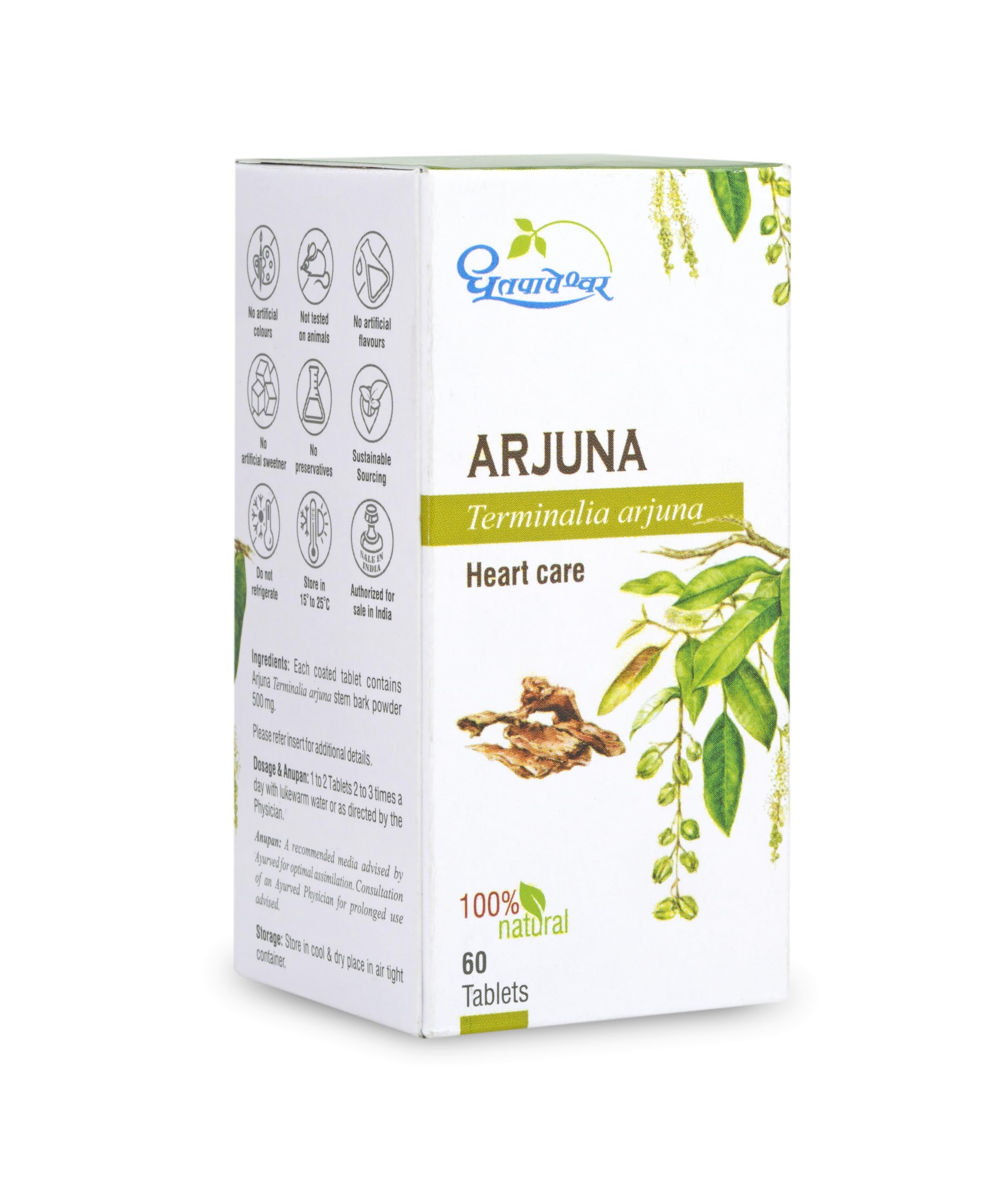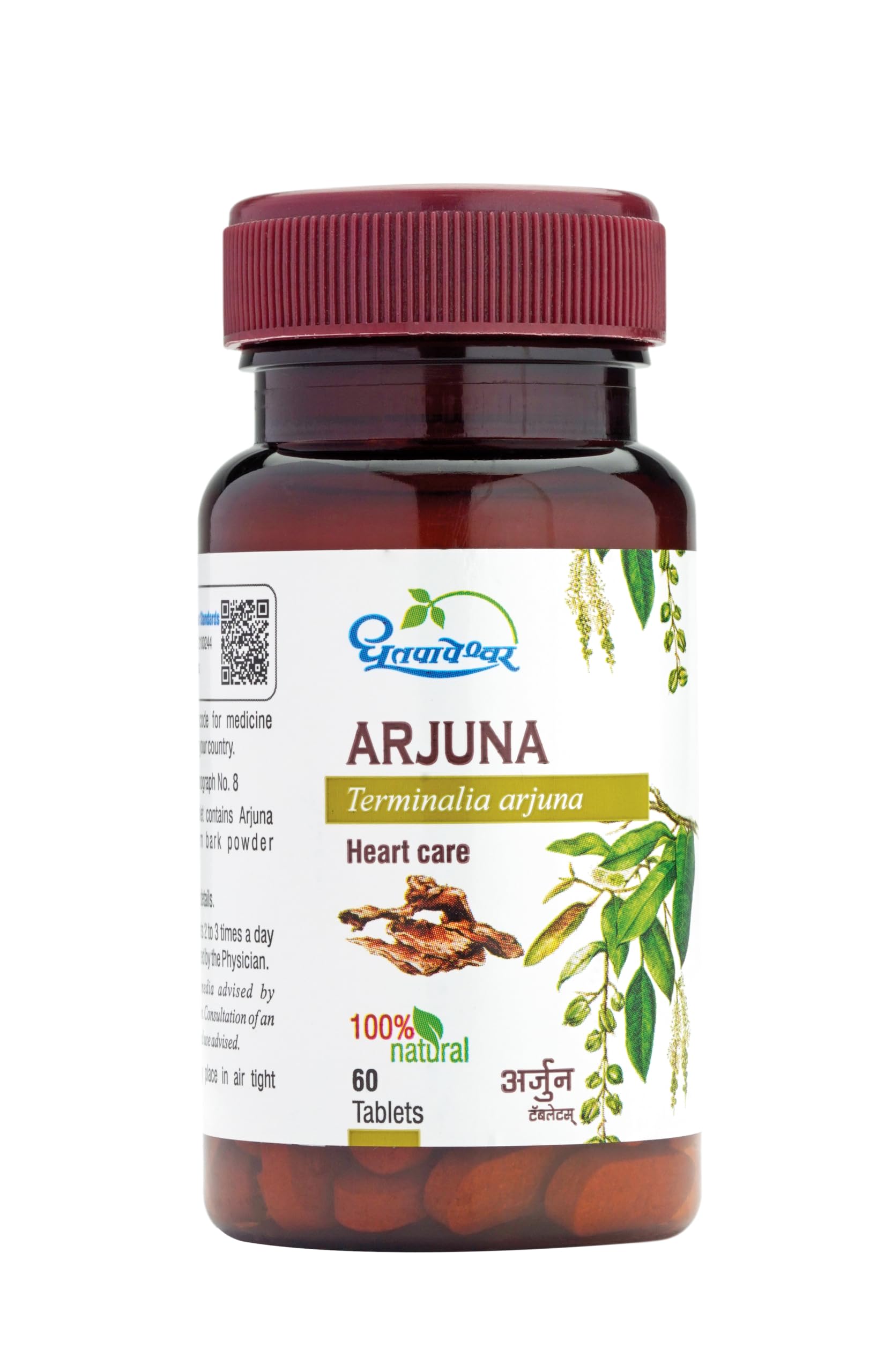 Dhootapapeshwar Arjuna Tablet is an Ayurvedic supplement that supports overall heart health and wellness. Made with pure Arjuna extract this tablet is rich in antioxidants and has powerful antibacterial and anti-inflammatory properties. Arjuna has long been used in Ayurveda to promote cardiovascular health improve circulation and help manage heart conditions. The antioxidants in Arjuna help reduce oxidative stress and protect cells from damage. This supplement also supports a healthy immune response and promotes general vitality. Ideal for those seeking natural heart health support Dhootapapeshwar Arjuna Tablet can help strengthen the heart boost energy and support overall well-being.