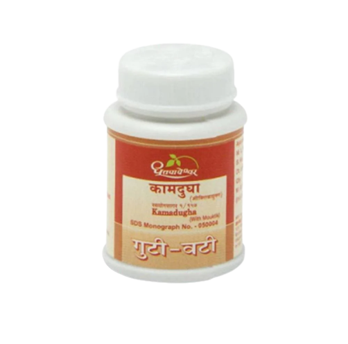 Dhootapapeshwar Kamdudha Ras (Moti Yukt) 25Tab:Ingredients:Mukta PishtiPraval PishtiShukti PishtiKapardak BhasmaShankh BhasmaShuddha SonageruGiloy SatvaLegal Disclaimer: Statements regarding dietary supplements have not been evaluated by the FDANote: Product images are for illustrative purposes only. Images/packaging/ labels may vary from time to time due to changes made by the manufacturer's manufacturing batch and location. The product description is for inf