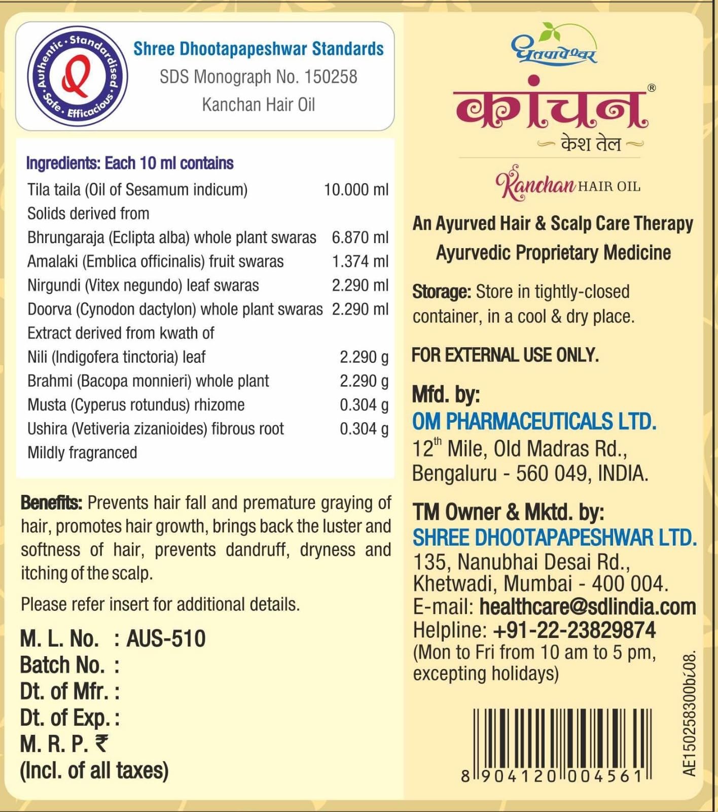 Dhootapapeshwar Kanchan Kesh Hair Oil Pack 1 (100ml)