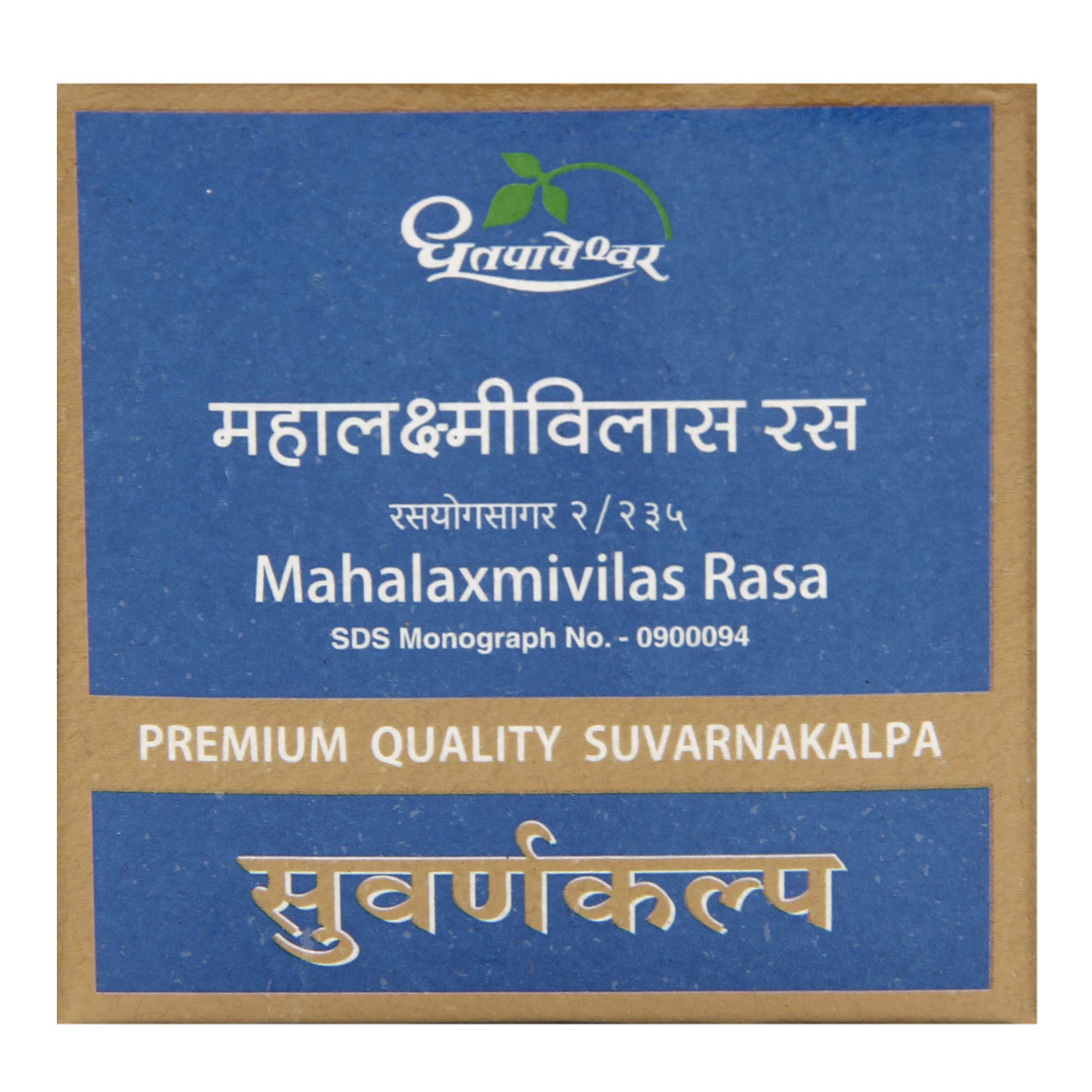 Dhootapapeshwar Mahalaxmi Vilas Rasa - 10 Tab is an Ayurvedic Proprietoery Medicine produced by Shree Dhootapapeshwar Ltd. Kindly refer to the package Information for Usage / dosage.