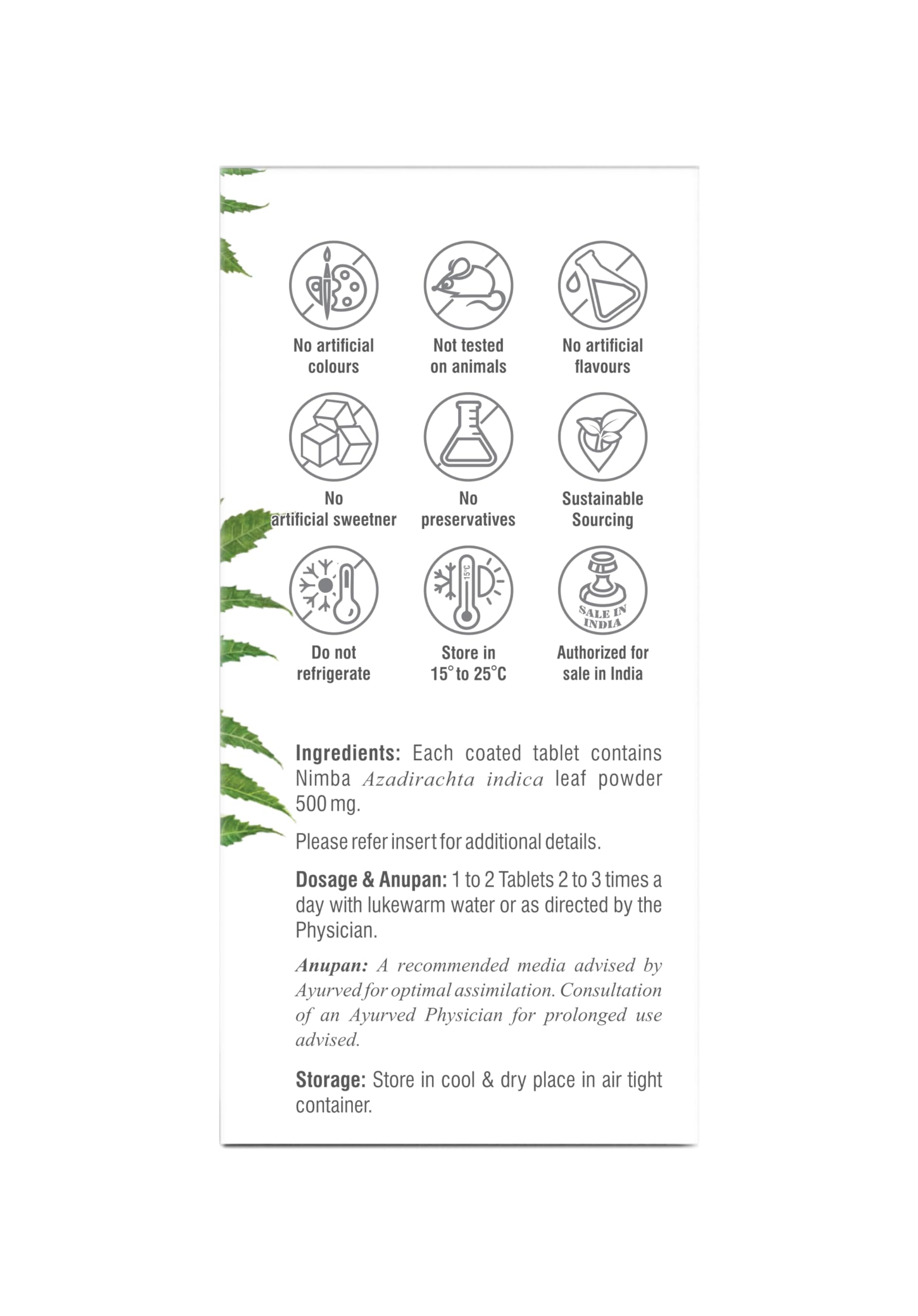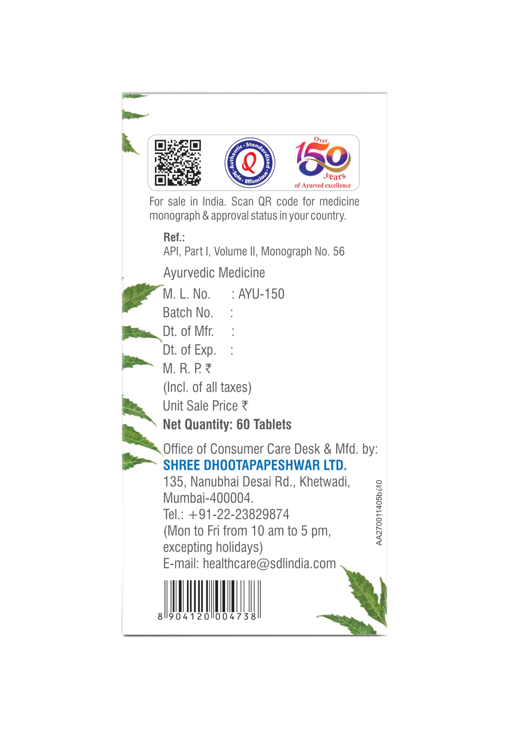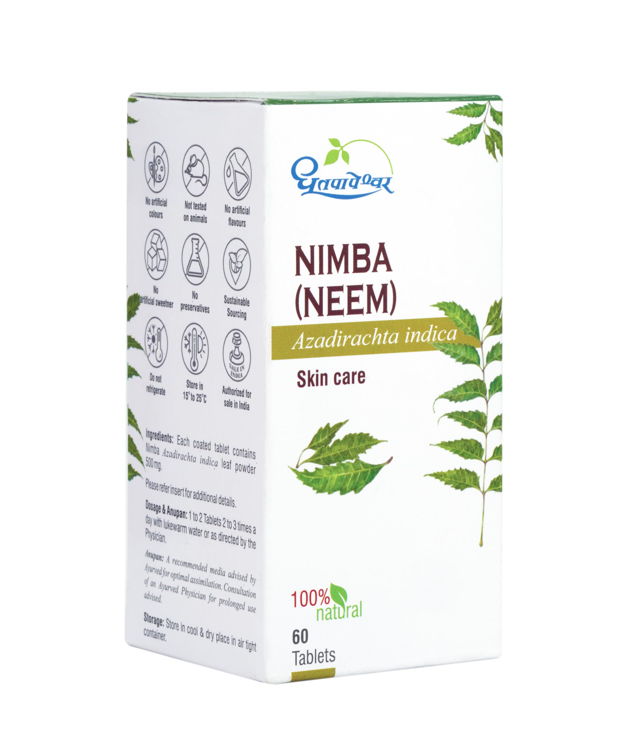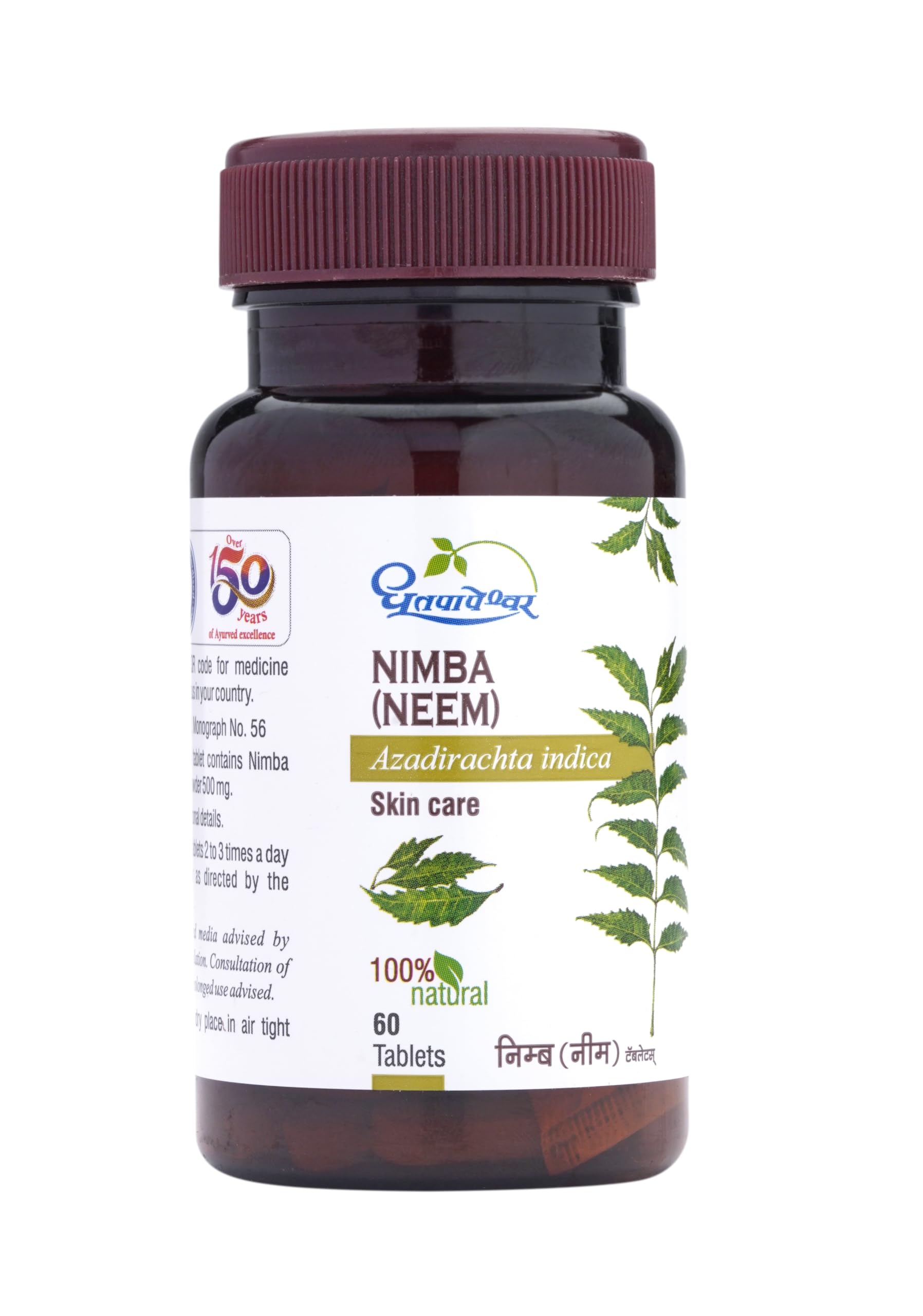 Dhootapapeshwar Neem Tablets | Ayurvedic Skin Health & Blood Purifier | Anti-Fungal Anti-Bacterial Supports Digestion & Heals Wounds | 60 Tablets X Pack Of 2
