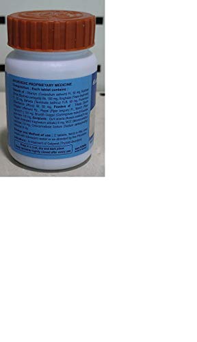 It contains Extracts of Dhaniya (Coriandrum Sativum) Fr 50mg Kachnar chhal (Bauhinia variegata) Bk. 100mg Singhada (Trapa Bispinosa) Fr. 50mg Baheda (Terminalia Bellirica) Fr.R. 50mg Punarnava (Boerhaavia Diffusa) Rt 50 mg Powders of : Trikatu [Sonth (Zingiber officinale) Rz. Pippal (Piper longum) Fr. Marich (Piper nigrum) Fr.] 100 mg Shuddh Guugul (Commiphora Mukul) Exudate gum resin 100mg Excipients: Gum acacia (Acacia arabica) 8 mg Talcum (Hydrated magnesium silicate) 8 mg MCC (Microcrystalline cellulose) 16 mg croscarmellose sodium (Sodium carbocymethyl cellulose) 8mg.