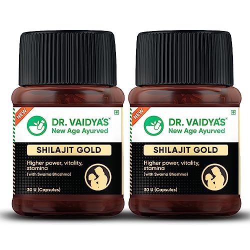 Dr Vaidya’s Shilajit Gold Capsules | 100% Pure Himalayan Shilajit | 95% Gold Bhasma | Pure Organic Ashwagandha | Safe for diabetic patients | No known side effects | 30 Capsules (Pack of 2)