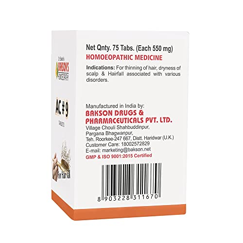 Dr. Bakshi's Bakson's Homoeopathy AC #9 Tablets, Help Prevent Hair Loss & Promote Hair Growth, 75 Tablets