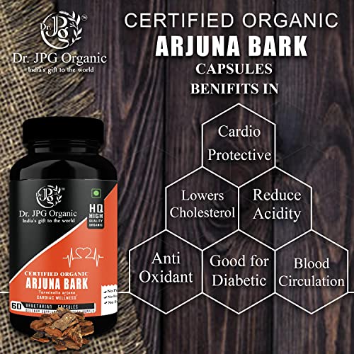 Dr. JPG Organic Arjuna Capsules For Bad Cholesterol 60 Veg. Capsules/INDIA ORGANIC Certified (Pack Of 2)