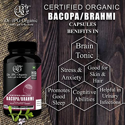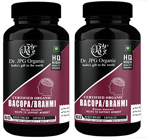 Dr. JPG Organic Brahmi Capsules For Memory Wellness/Bacopa Monniera / 500mg 60 Veg. Capsules/INDIA ORGANIC Certified (Pack Of 2)