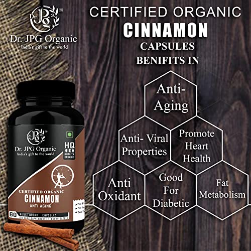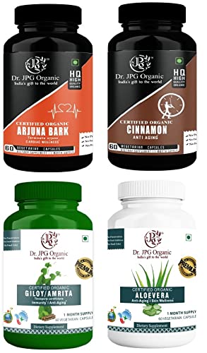 Dr. JPG Organic Capsules For Heart Care Arjuna Cinnamon Aloe Vera & Giloy 240 veg. Capsules (60 Cap. In Each Bottle) INDIA Organic Certified.