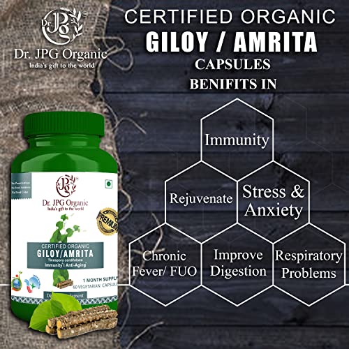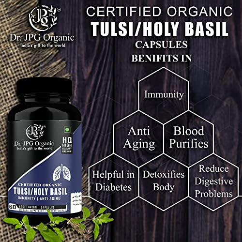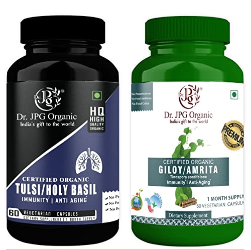Dr. JPG Organic Giloy & Tulsi For Lungs Wellness 120 Veg. CapsulesI | 60 Cap. X 2 Bottle | INDIA ORGANIC Certified.