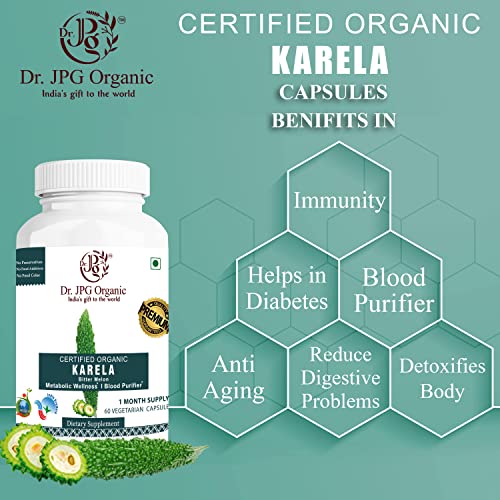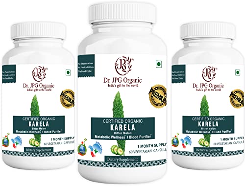 Dr. JPG Organic Karela Capsules For Diabetic & Sugar Metabolic Wellness 60 Veg. Capsules/INDIA ORGANIC Certified (Pack Of 3)