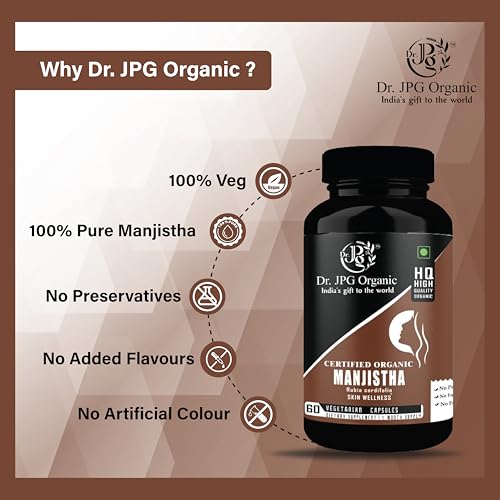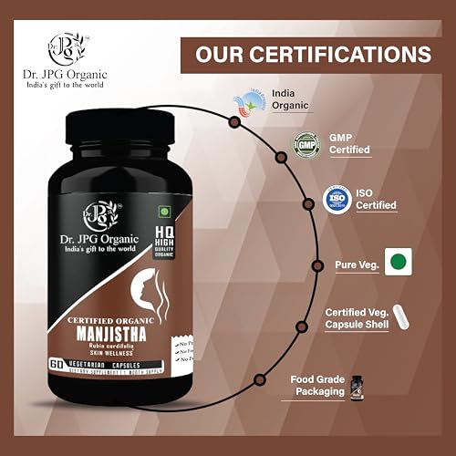 Dr. JPG Organic Manjistha Capsules For Hair & Skin Care 500mg 120 Veg. Capsules | INDIA ORGANIC Certified.