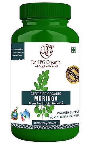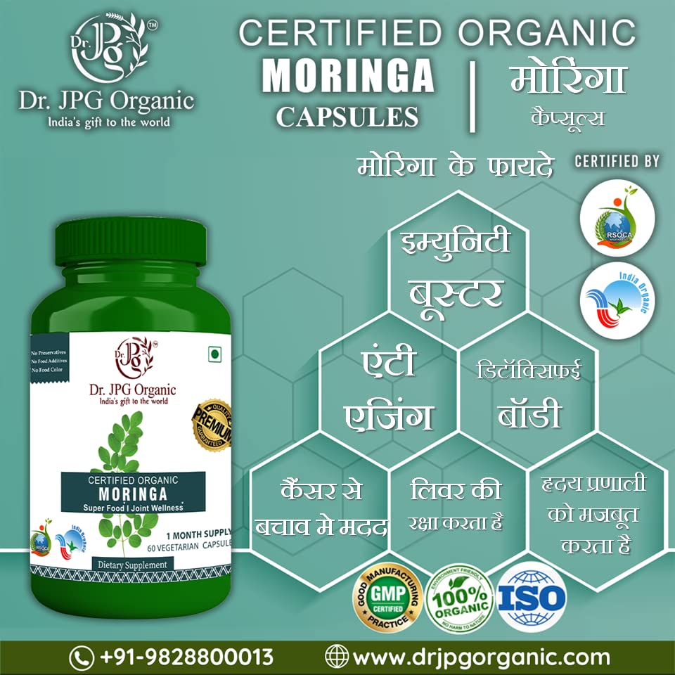 Dr. JPG Organic Moringa Capsules For Joint Wellness Super Food 120 Veg Capsules/INDIA ORGANIC Certified (Pack Of 1)