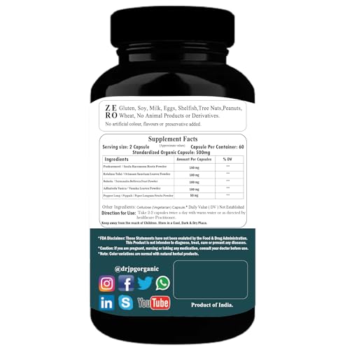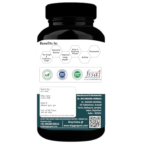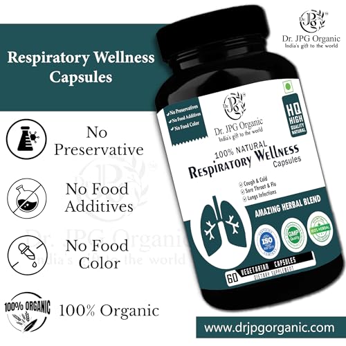 Dr. JPG Organic Respiratory Wellness 500mg 60 Veg. Capsules For Cough & Cold.