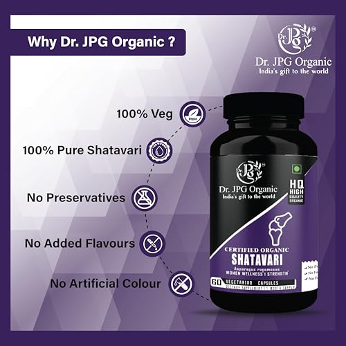 Dr. JPG Organic Shatavari Capsules 500mg 120Veg. Capsules/INDIA ORGANIC Certified.