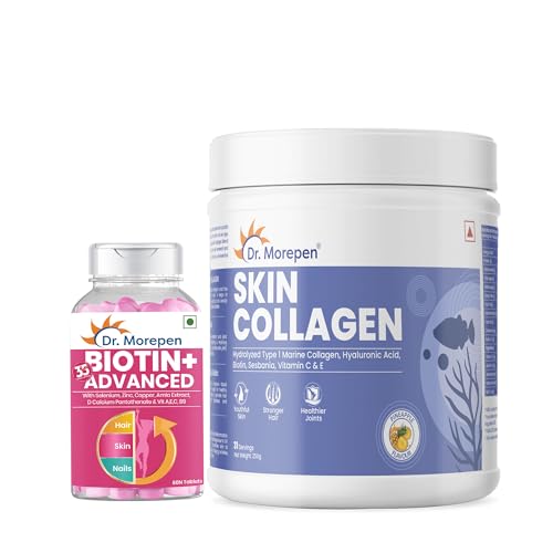 DR. MOREPEN Biotin+ for Hair Growth- 60 Veg Tablets & Marine Collagen Skin Protein Powder | Pineapple Flavour | 250g