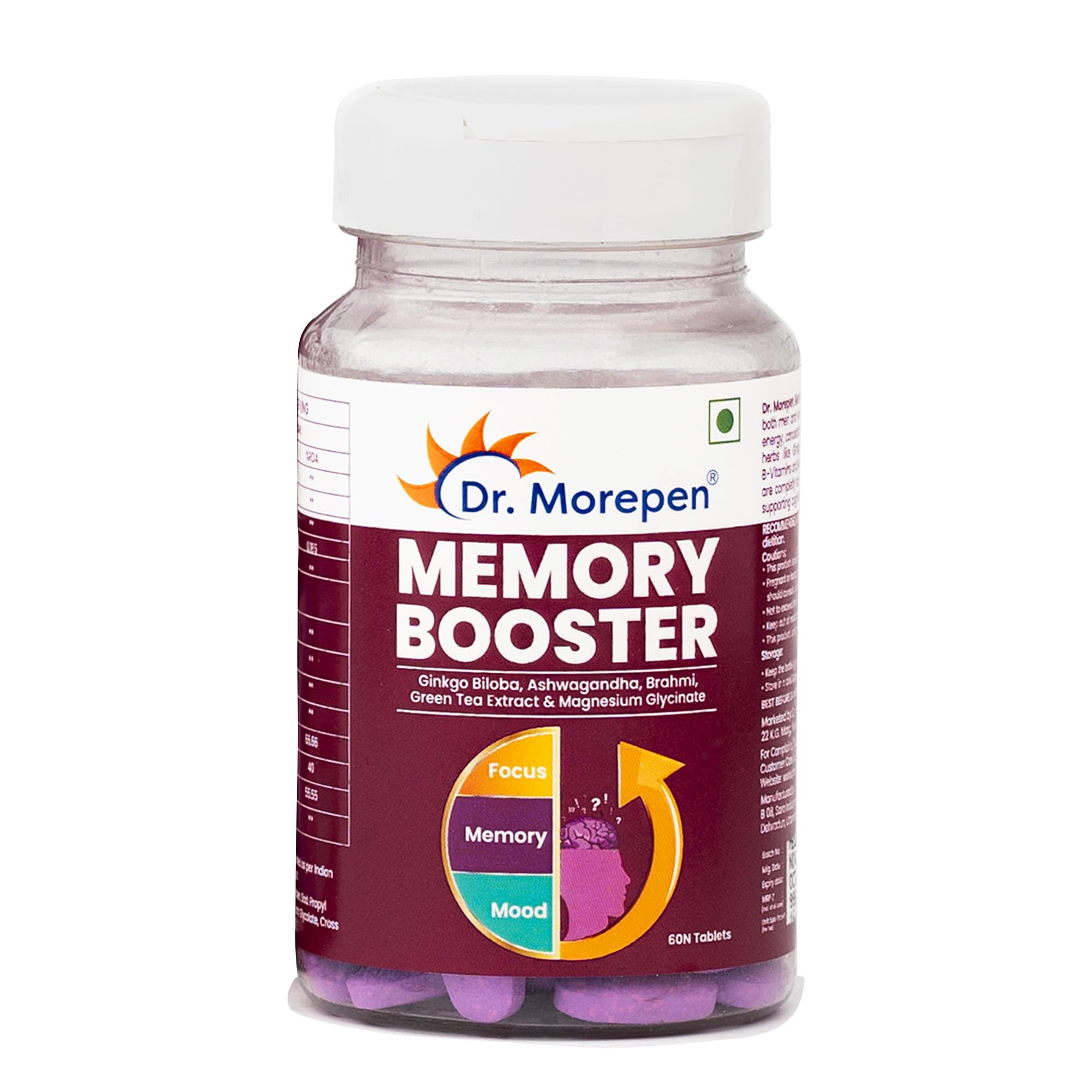 DR. MOREPEN Memory, Focus & Mood Tablets Enriched With GABA, Ashwagandha, Chamomile & Brahmi-Vitamins B1, B2, B3, Magnesium | Safe For Brain Health, Non-GMO & Preservatives Free-60 Tablets