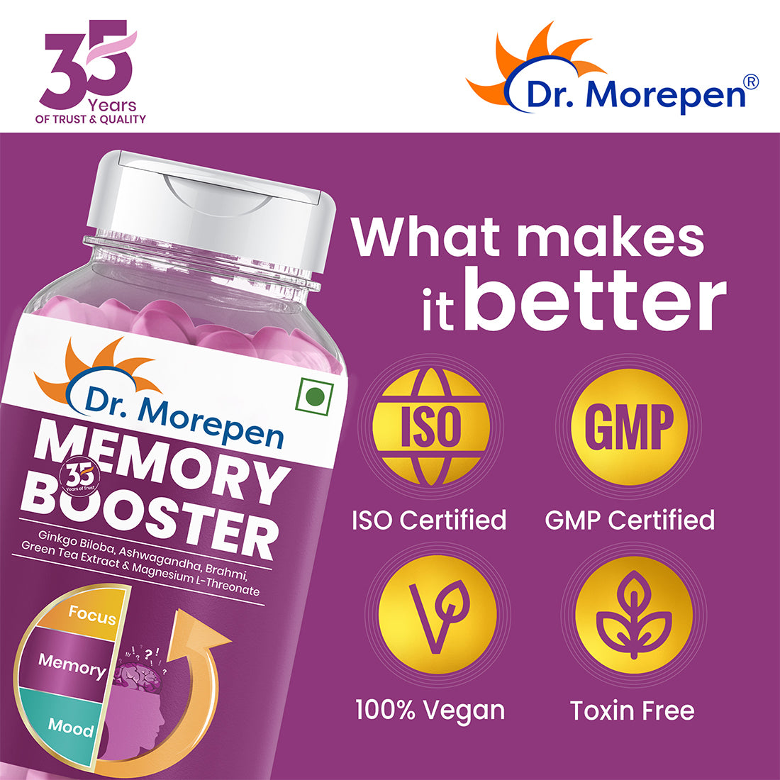 Dr. Morepen Memory Focus & Mood TabletsDirections to Use::Take 1 tablet daily or as suggested by the expert.Legal Disclaimer: Statements regarding dietary supplements have not been evaluated by the FDA.Note: Product images are for illustrative purposes only. Images/packaging/ labels may vary from time to time due to changes made by the manufacturer's manufacturing batch and location. The product description is fo