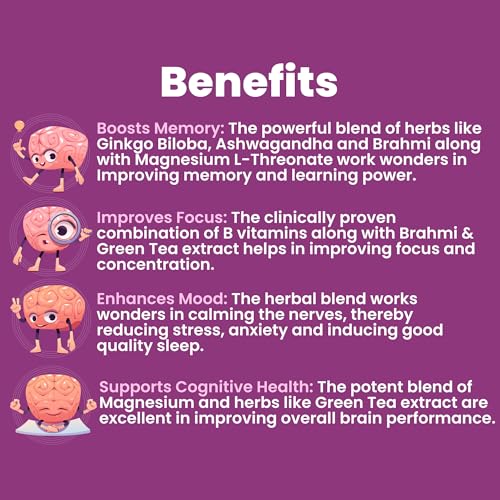 ENHANCES MEMORY: The tablets work as natural brain boosters that help enhance memory with the help of Ashwagandha & GABA (Gamma-Amino Butyric Acid) that works behind the scenes for fast learning. It is great for preventing memory loss in old age.