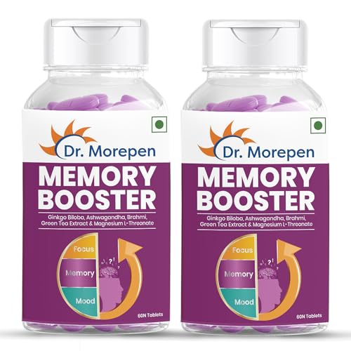 DR. MOREPEN Memory, Focus & Mood Tablets with GABA, Ashwagandha & Chamomile for Brain Health - 60 Veg Tablets Pack of 2