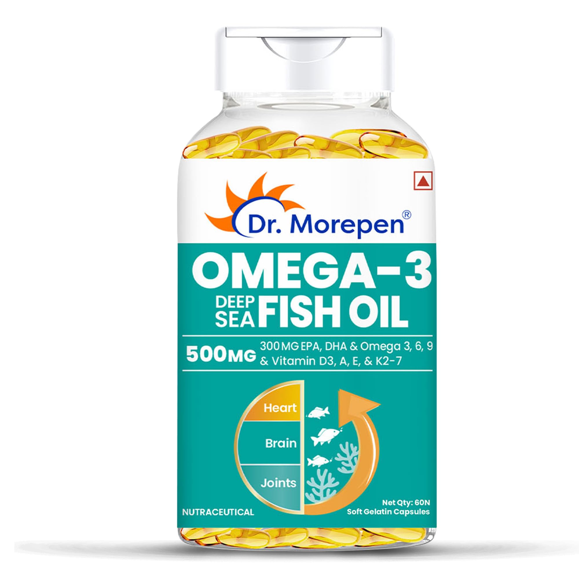DR. MOREPEN Omega 3 Fish Oil with 300mg EPA & DHA | 500mg | High Potency Fish Oil 60 Softgels (Pack of 1)