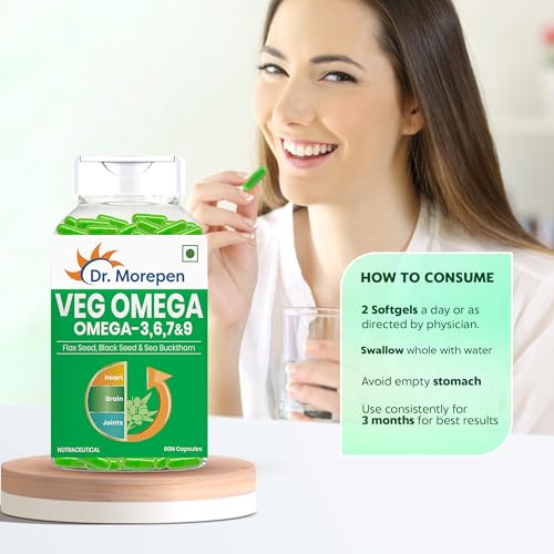 DR. MOREPEN Veg Omega 3 6 7 9 Capsules 500mg Flax Seed, Black Seed & Sea Buckthorn - 60 Veg Capsules Pack of 2