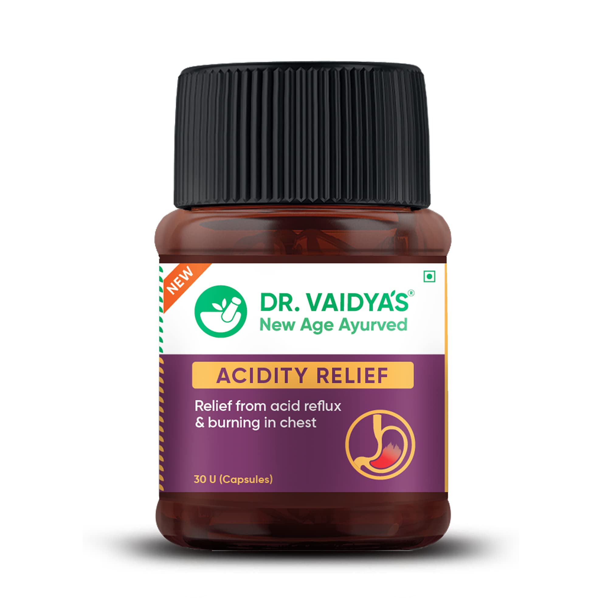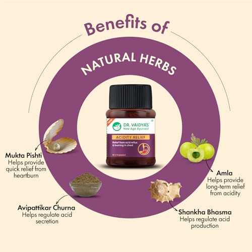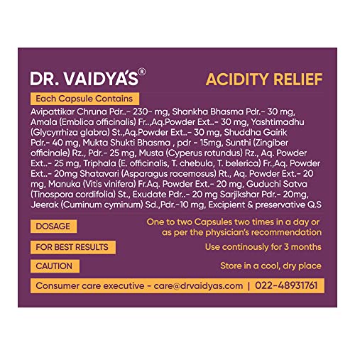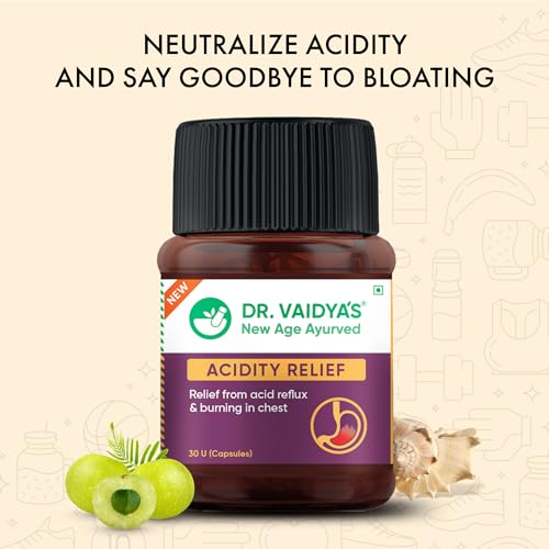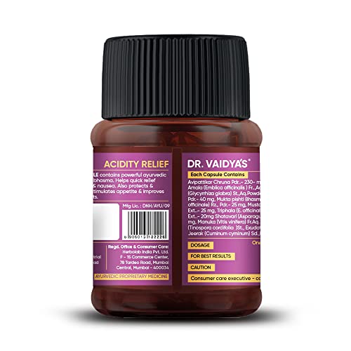 DR. VAIDYA'S Acidity Relief Capsules Ayurvedic Medicine For Acidity and Gas, 30 Capsules (30 Count (Pack of 1))
