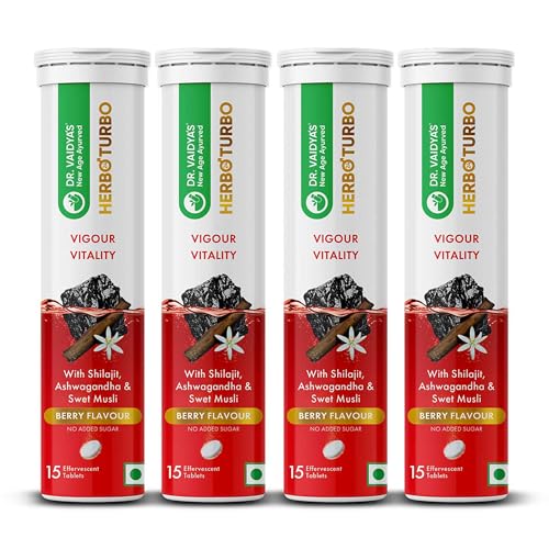 Dr. Vaidya's Herbo24Turbo Effervescent: Unlock Super Vigour and Vitality with Shilajit and Ashwagandha(Berry Flavour)(Pack of 4)