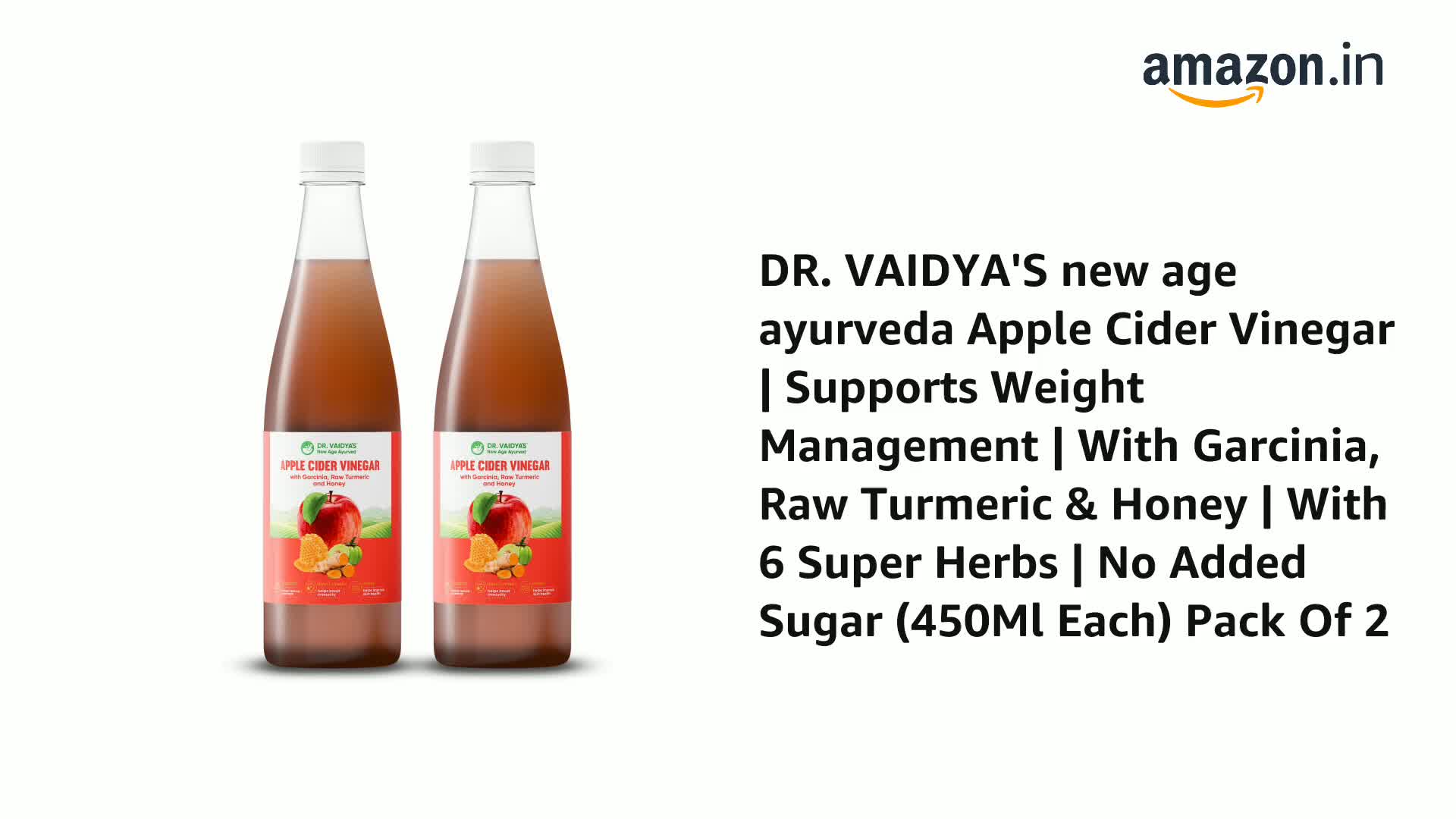 Dr. Vaidya's Apple Cider Vinegar | Burns Excess Fat | Promotes Weightloss | Garcinia, Raw Turmeric, and Honey | No Added Sugar | (450Ml Each) Pack Of 2
