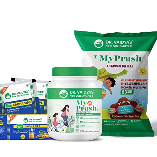 Dr. Vaidya's new age ayurveda Health Pack - Chyawan - 75 Toffees Kadha Sips - 30 Sachets MyPrash for Daily Health - 500 grams Pack of 3
