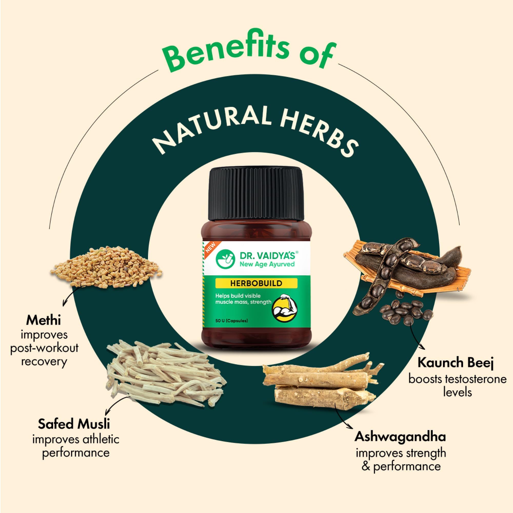 DR. VAIDYA'S new age ayurveda Herbobuild Capsules | Ayurvedic Muscle & Mass Gainer For Enhanced Stamina & Peak Fitness | (50 Capsules Each) Pack Of 2