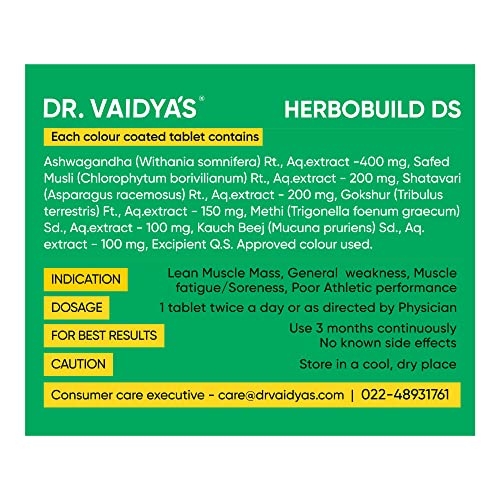 DR. VAIDYA'S new age ayurveda Herbobuild Ds (Double Strength) Capsules | Ayurvedic Muscle & Mass Gainer For Enhanced Stamina & Peak Fitness | (30 Capsules Each) Pack Of 2