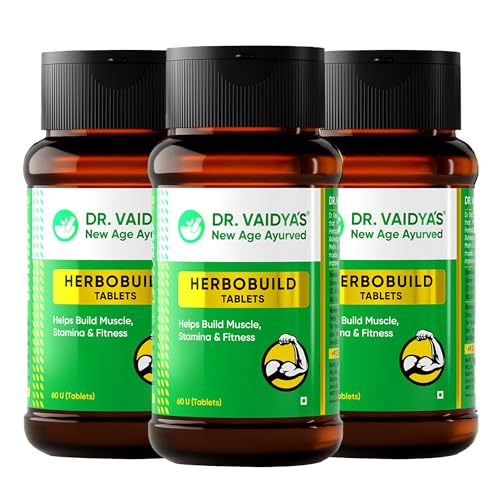 DR. VAIDYA'S new age ayurveda Herbobuild Tablets | Ayurvedic Muscle & Mass Gainer For Enhanced Stamina & Peak Fitness | (60 Tablets) Pack Of 3
