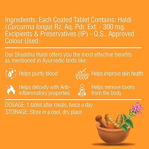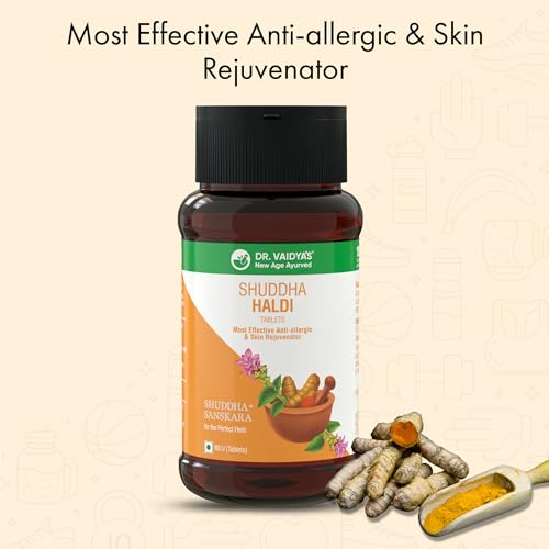 Dr. Vaidya's Shuddha Haldi Tablets | Anti-Inflammatory & Skin Rejuvenator | 3-Step Sanskara Process for Maximum Potency | (60 Tablets) Pack of 1
