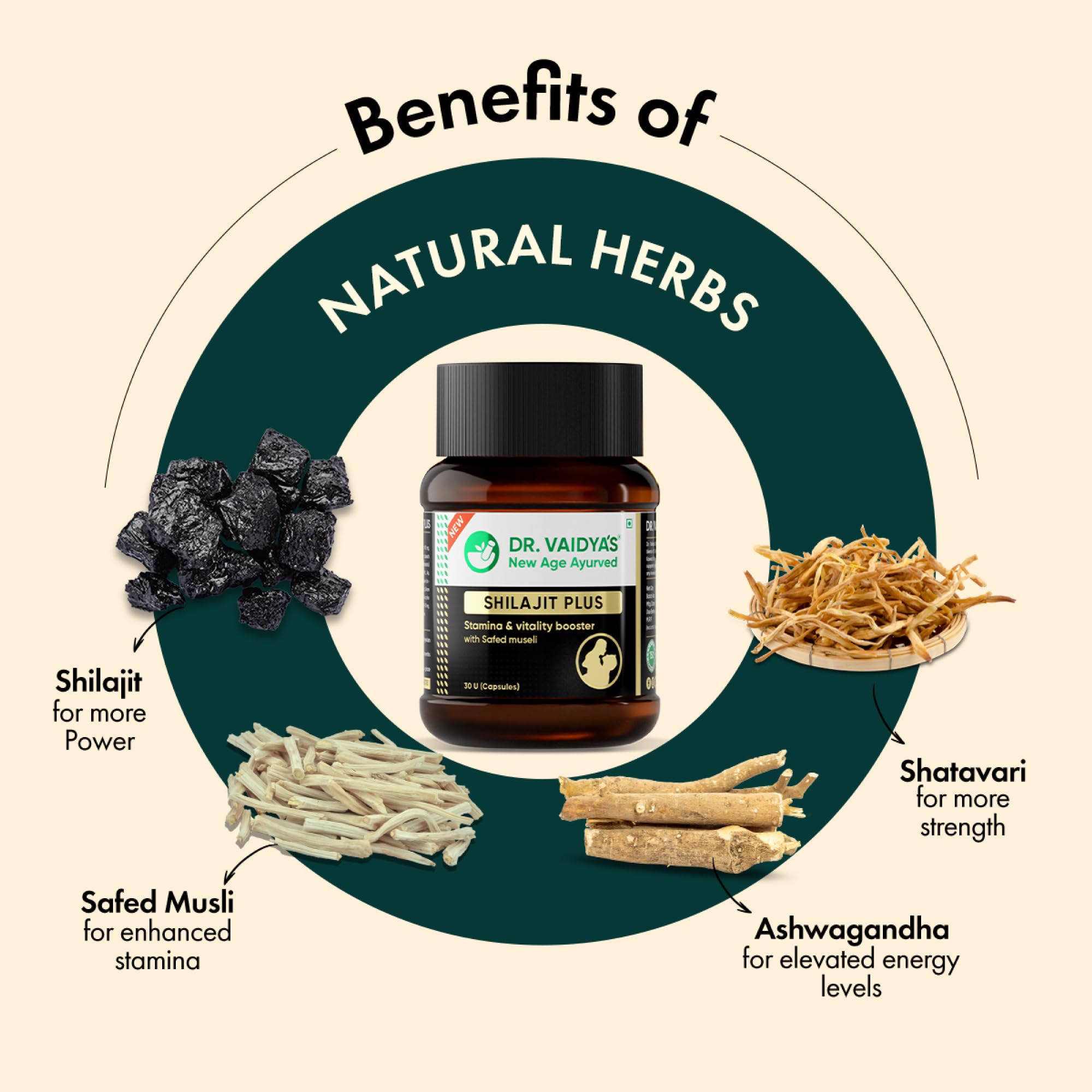 Dr. Vaidya's Shilajit Plus is specially formulated for men looking to boost their strength power and stamina. With hand-selected Aphrodisiac herbs and blood flow-boosting ingredients men have experienced a boost in power. This Ayurvedic power capsule for men works by optimizing male hormone levels and increasing blood flow while boosting stamina and energy levels. To top this off Shilajit Plus is 100% natural with no known side effects and safe for long-term use.