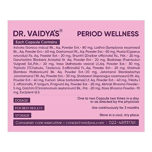 Dr. Vaidya's Period Wellness Capsules | Reduces Period Cramps & Pain | Supports Reproductive Health | Ashoka & Shatavari (30 Capsules Each) Pack of 3