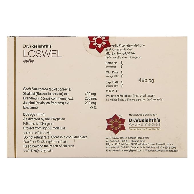 Dr. Vasishth's Loswel Tab. -60 Tabs. with Free Pachak Methi