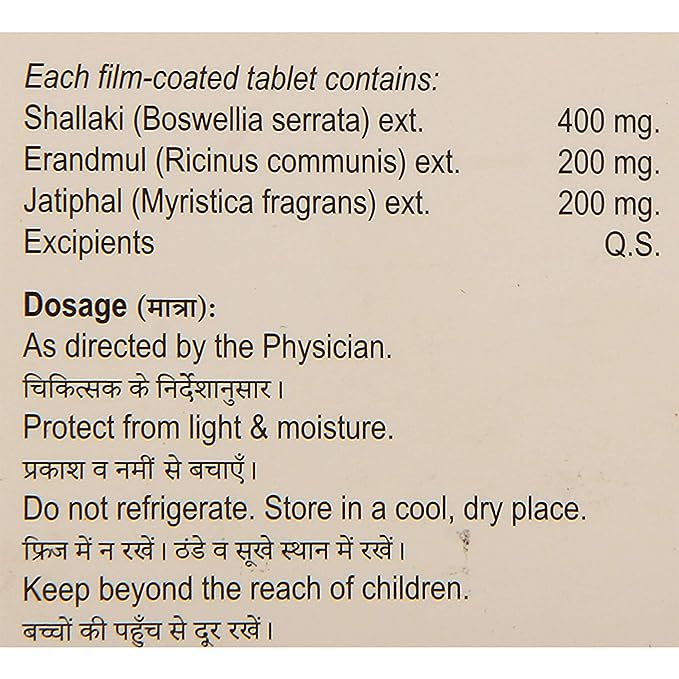 Ingredients: Boswellia serrata, Ricinus communis, Myristica fragrans.