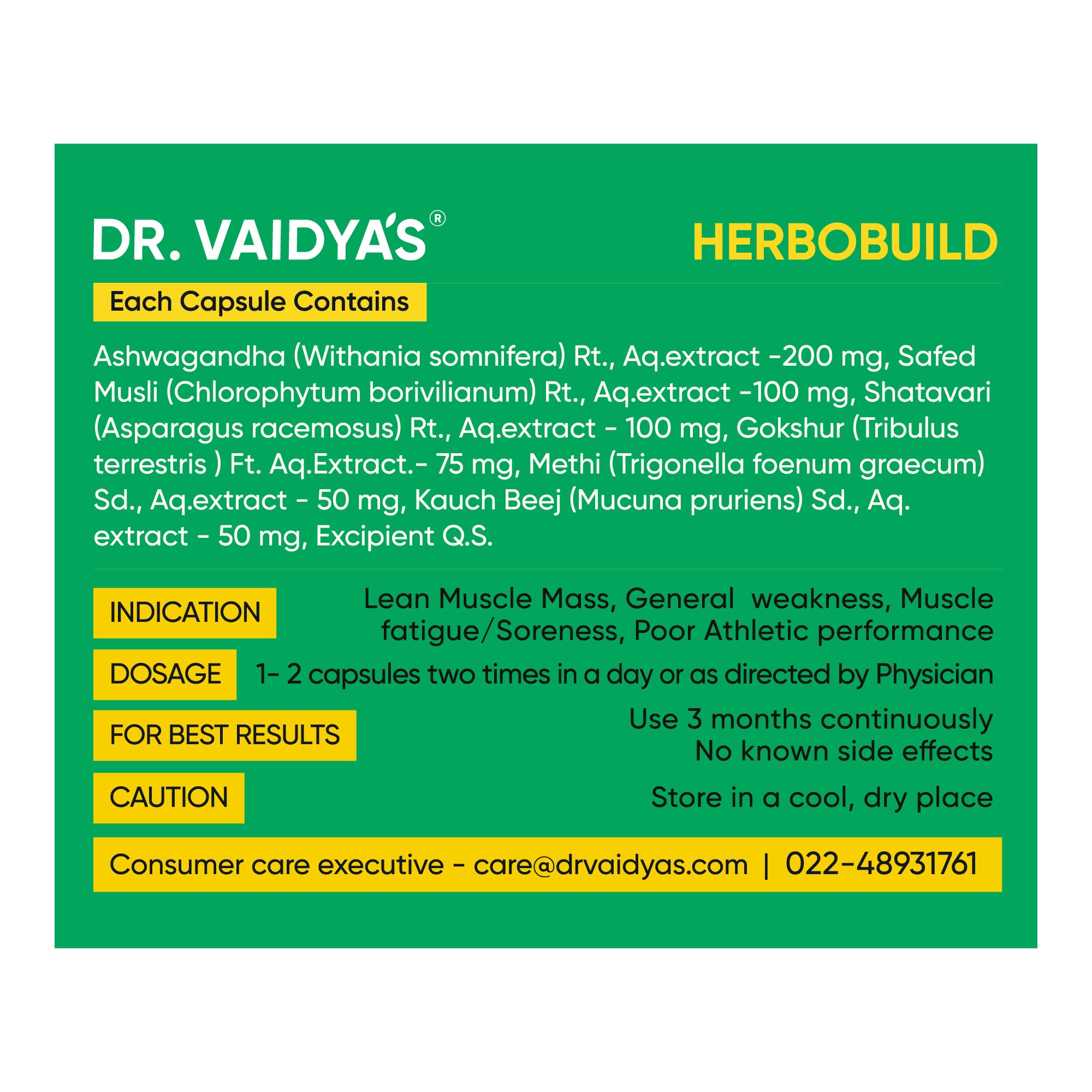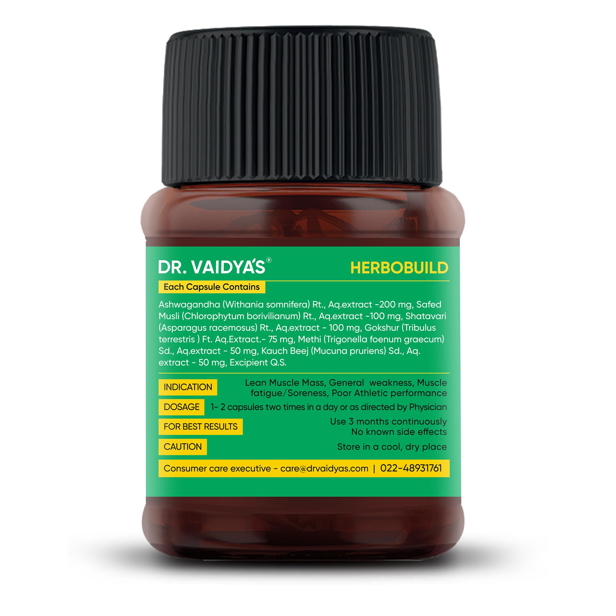 Dr.Vaidya's Herbobuild | Ayurvedic Muscle & Mass Gainer Capsules | Muscle Protein Synthesis | Lean Mass Gainer | Improved Stamina & Strength (Pack of 4 (50 Capsules))
