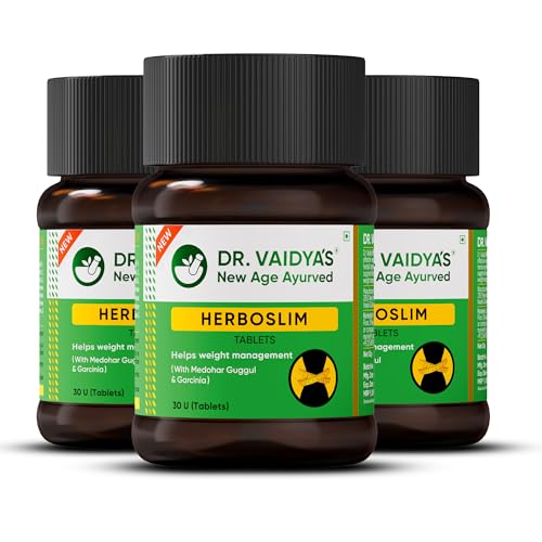 Dr. Vaidya's Herboslim Tablets | Ayurvedic | For Weight Management | Improves Metabolism | Supports Natural Detoxification | (30 Tablets Each) (Pack of 3)