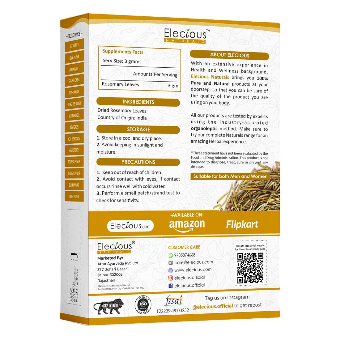 Elecious Naturals Rosemary Leaves for Hair Growth 100 grams | 100% Pure and Natural | Ideal for preparing rosemary water and rosemary oil (100 Grams)