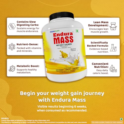 Endura Mass Weight Gainer 3 kg Banana Flavour | Unique blend of 3 sources of protein (15g) carbs (71 g) 10 vitamins & 3 essential minerals | Ideal for Children above 10 years men women & athletes.