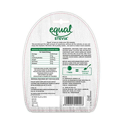 Equal Stevia 300 Tablets | Plant-Based 100% Natural Sweetener | Sugar Free | Friendly | Vegan & Keto Friendly | Pack of 1